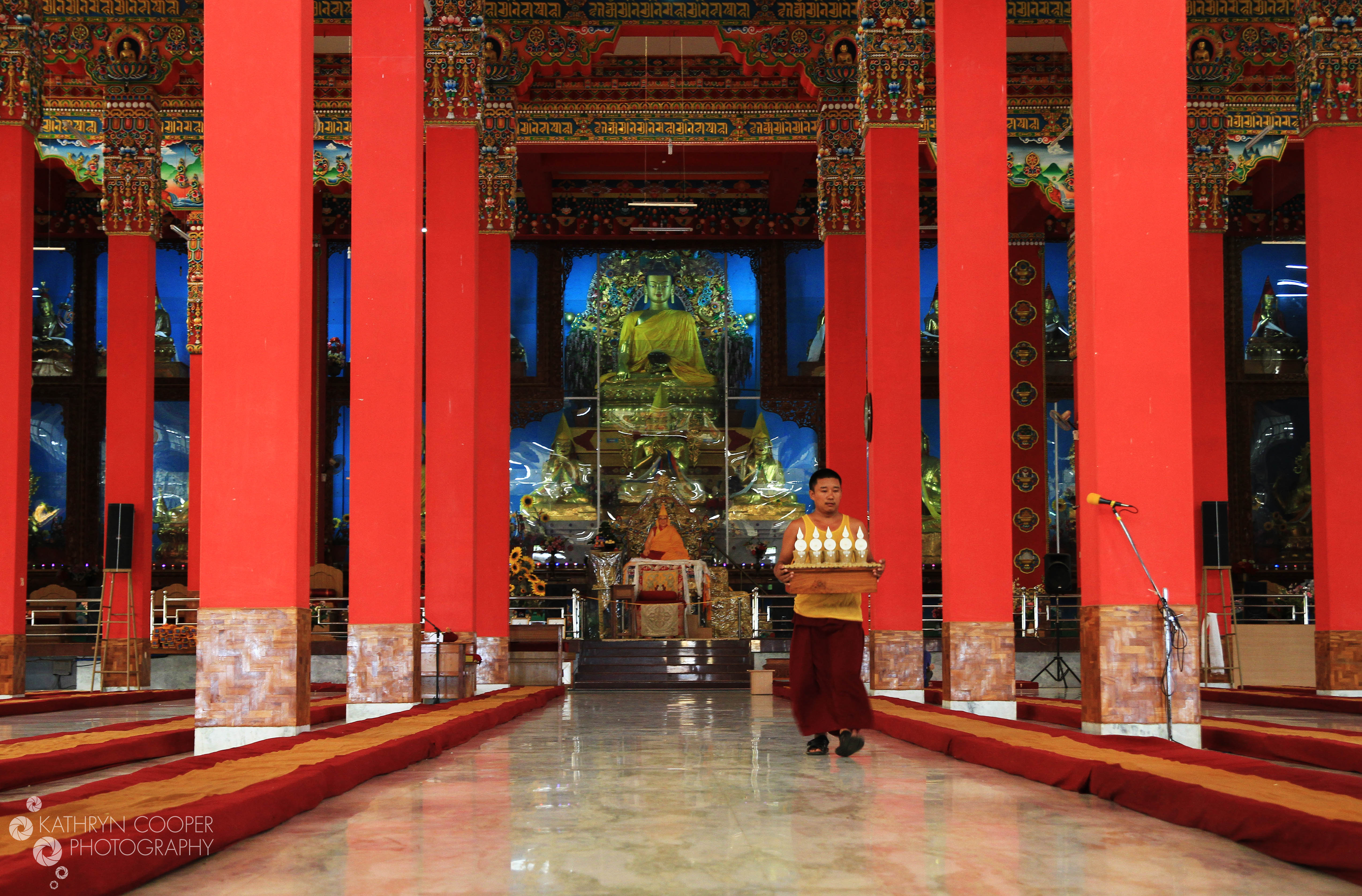 Red – I visited a Tibetan settlement called Mundgod and was enchanted by the bright colors, intense silence, and unique way of life in these refugee establishments. While in the largest meditation room, I caught this monk preparing for the next ceremony. The tiniest footsteps would echo in this red-adorned temple room, so I only took a few photos. And yes, that IS a cardboard cutout of the Dalai Lama in the background.