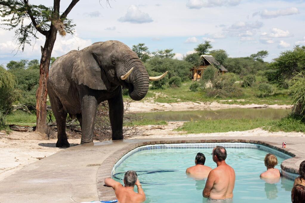 Jodi (@AlpineResort) of Canada caught this wild elephant near–VERY near–a swimming pool in Botswana. You’d think the mood would be one of chaos and fear, but these people appear either calm or extremely surprised: pic.twitter.com/xoX58e4fOT