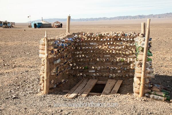 The lovely Rachel Davis (@vagabondbaker) of the UK noted that some Mongolians were proud of their bottle-decorated bathroom. Hey, it uses recycling AND looks pretty from 3 sides, right? https://twitter.com/vagabondbaker/status/486230495781330945/photo/1