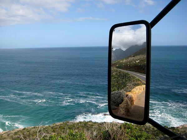 The always exciting co-host Savannah Grace (@sihpromatum) of Holland captured a fantastic ocean/review mirror shot in South Africa. Anyone else think it looks like the California coast? https://twitter.com/Sihpromatum/status/486227597547020289/photo/1